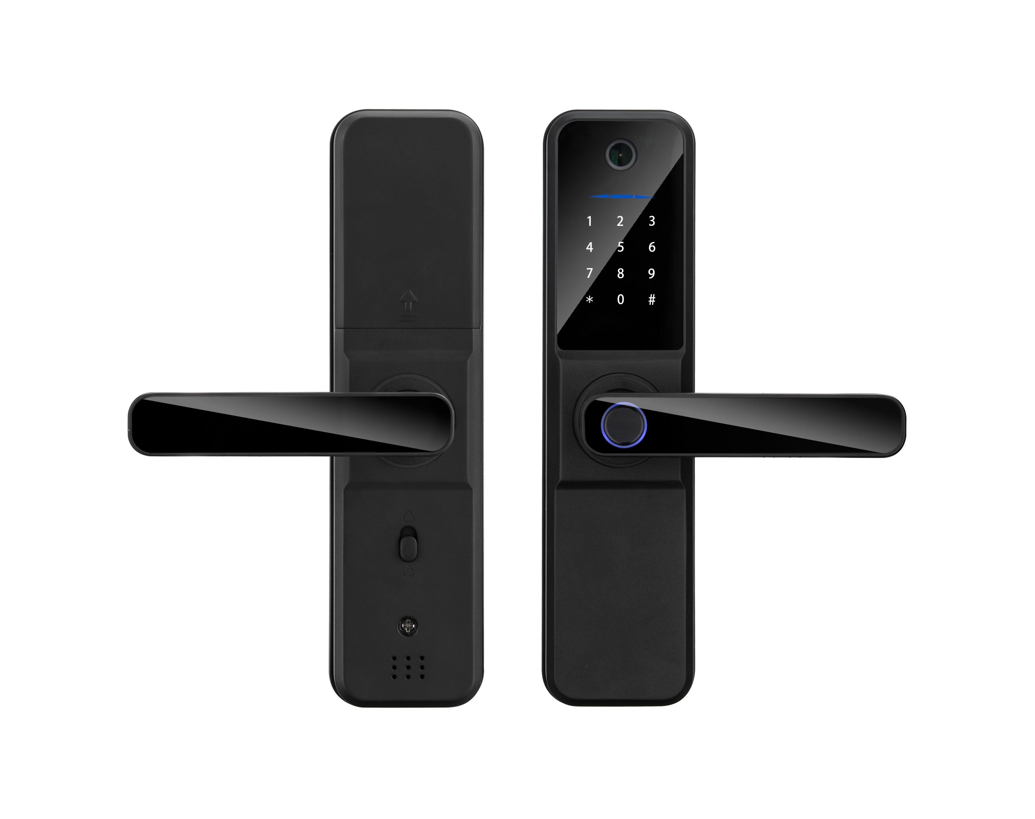 - Tuya Visible Peephole: Built-in smart camera allows you to monitor visitors directly through the Tuya App.