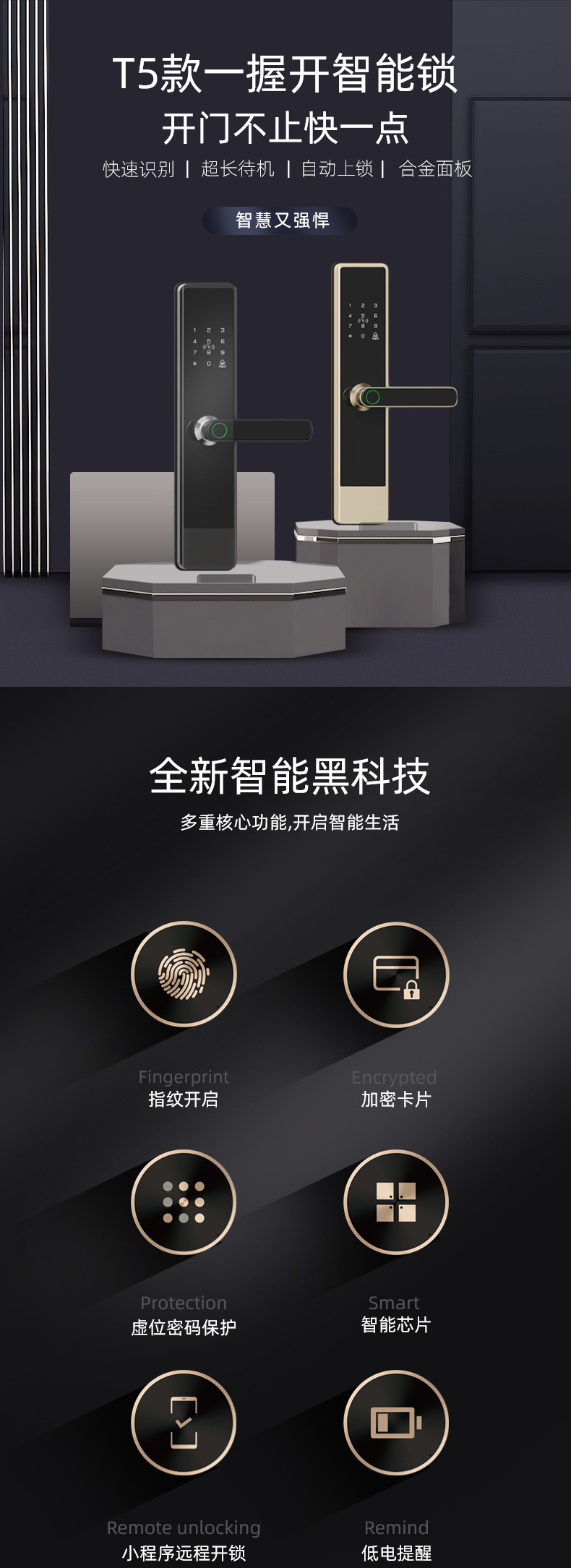 T5 Semi-Automatic Smart Fingerprint Door