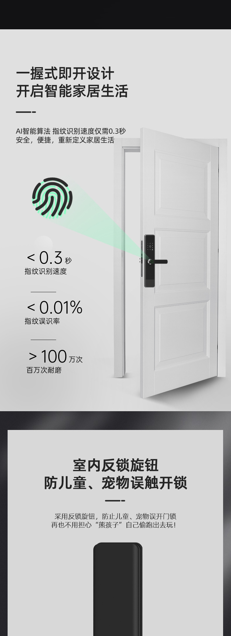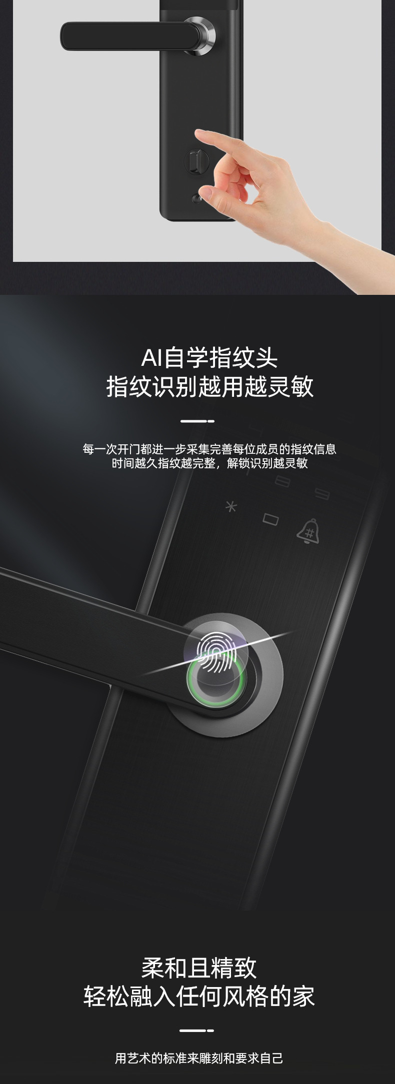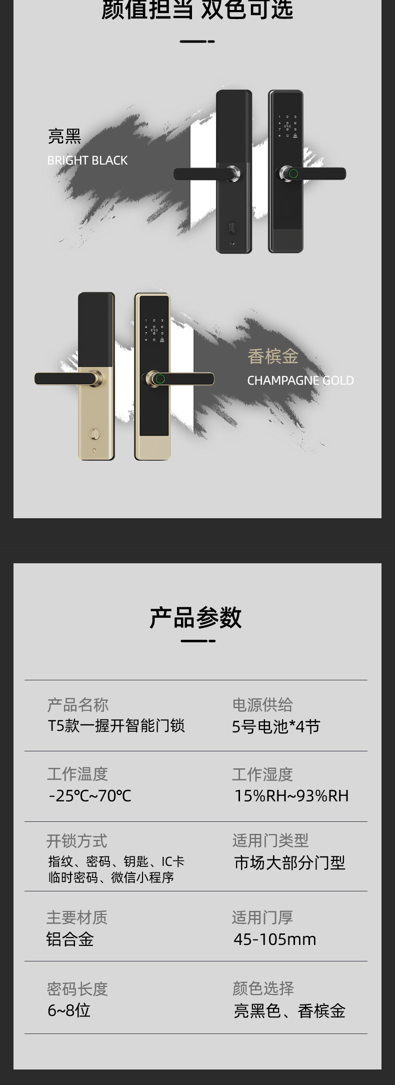 - 5 unlocking methods: fingerprint / password / IC card / mechanical key / App remote control