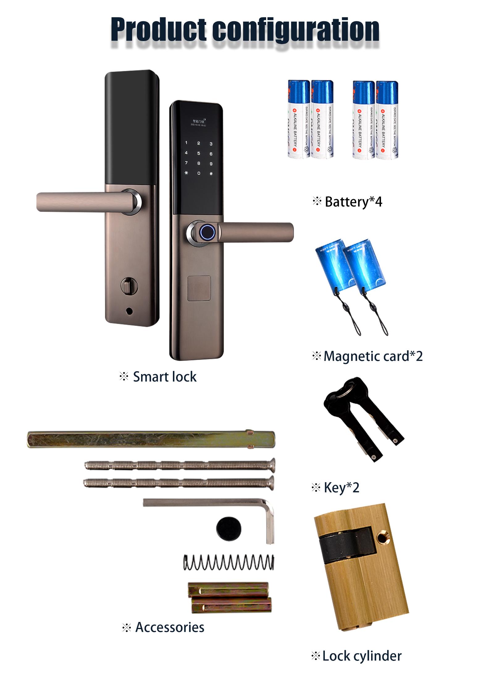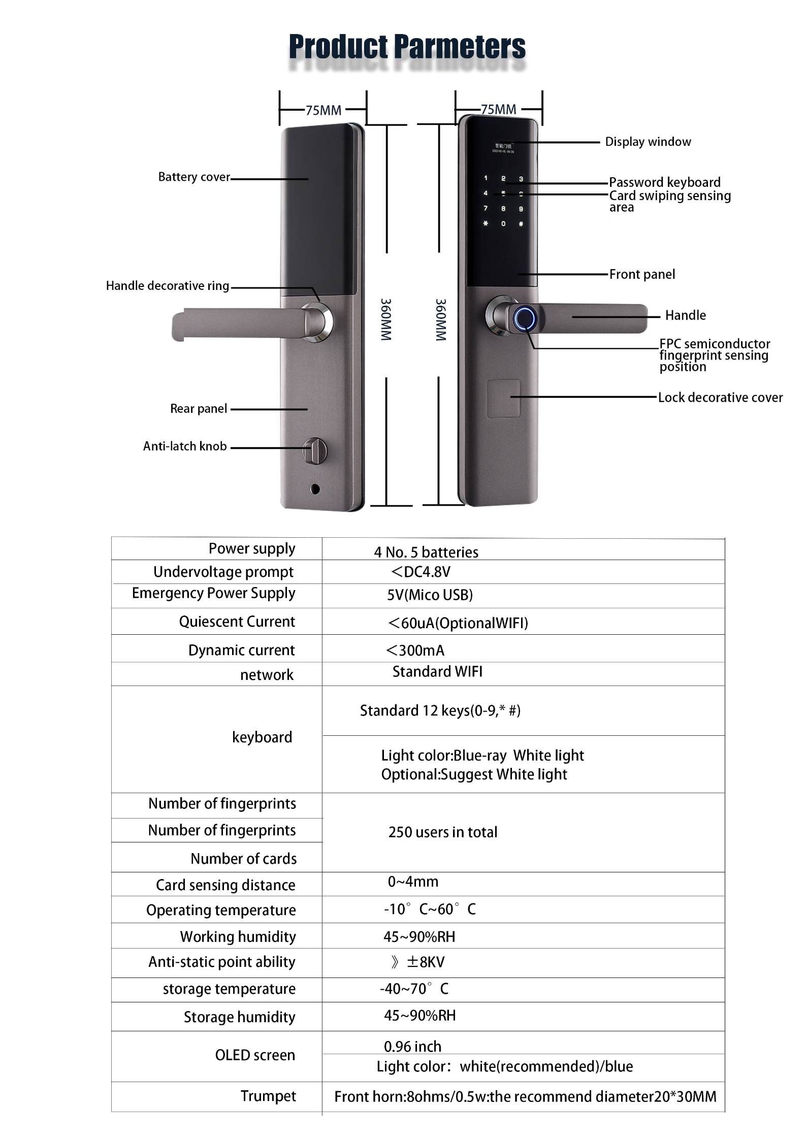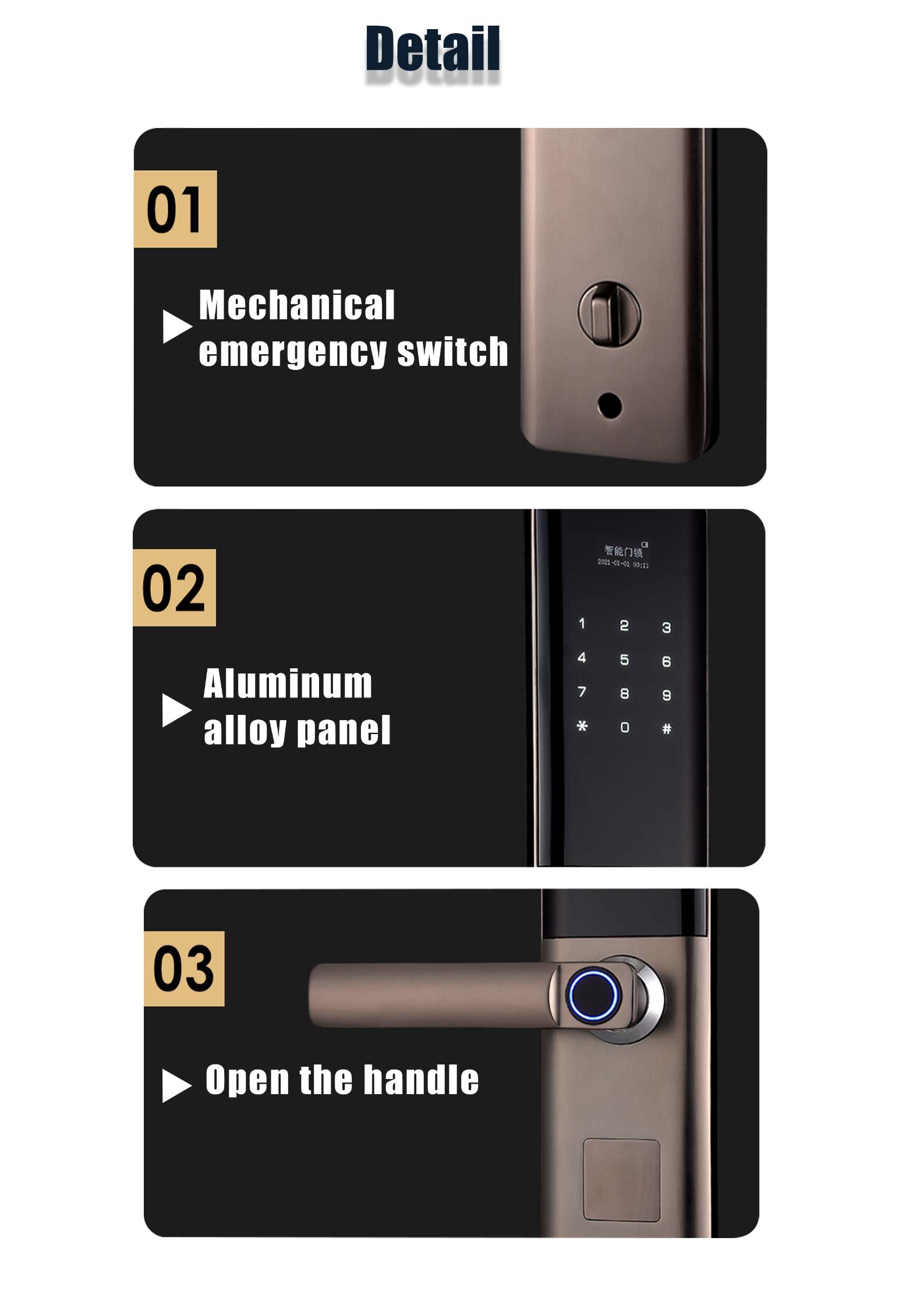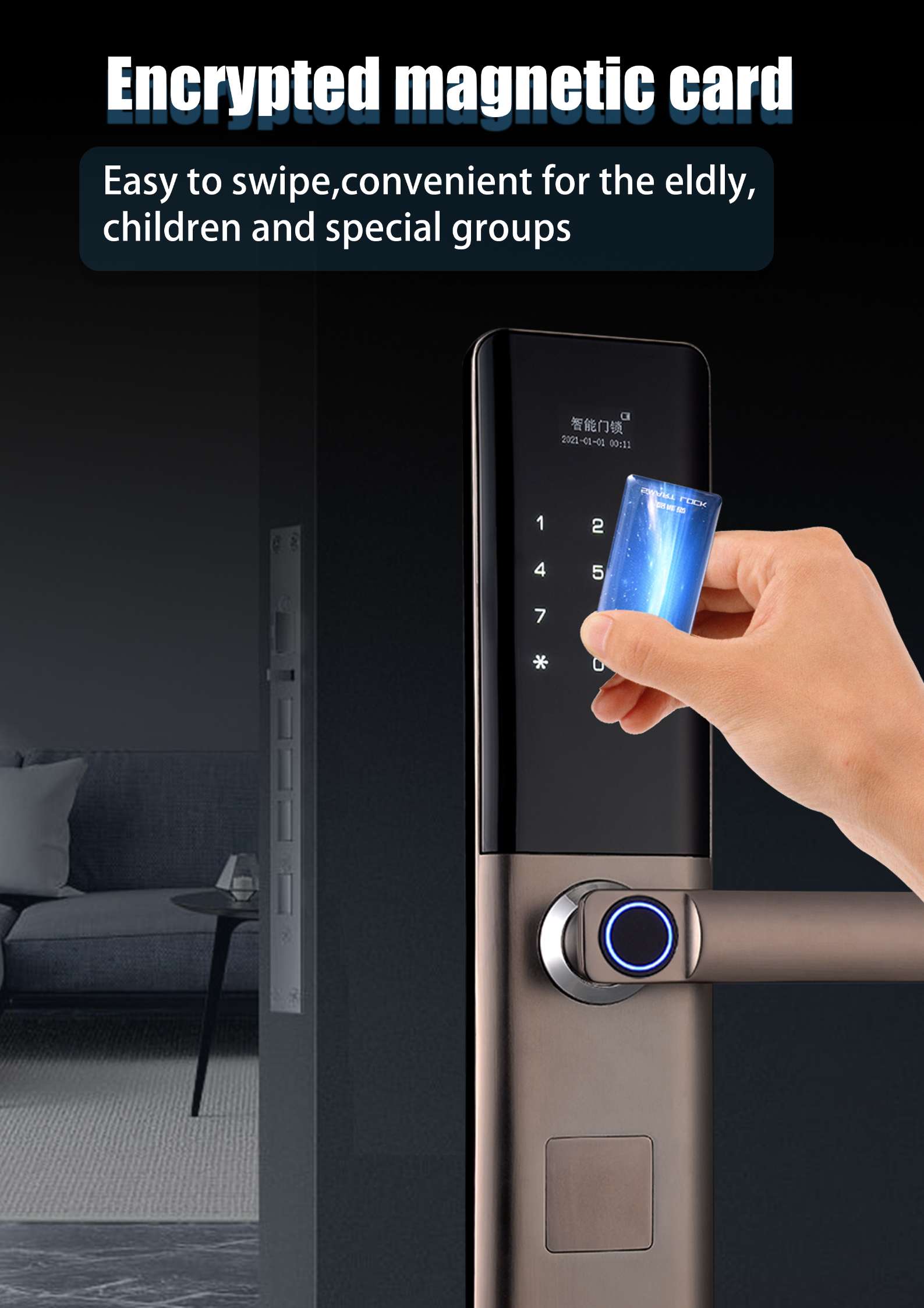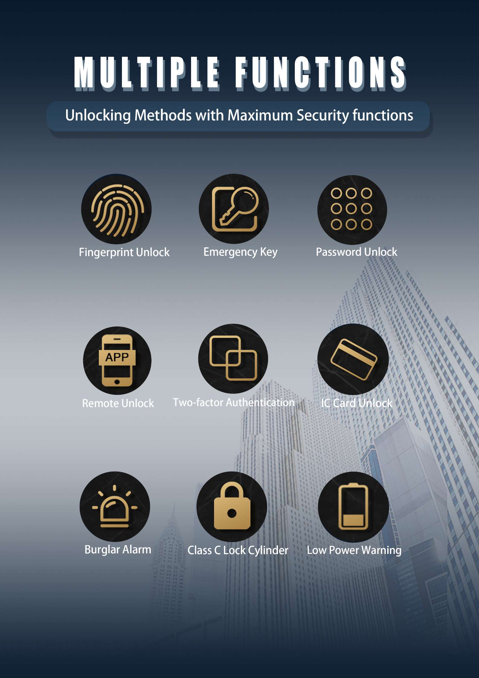 - 5 unlocking methods: fingerprint / password / IC card / mechanical key / App remote control